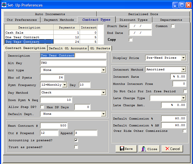 Contract Types drive how invoices are Amortized,