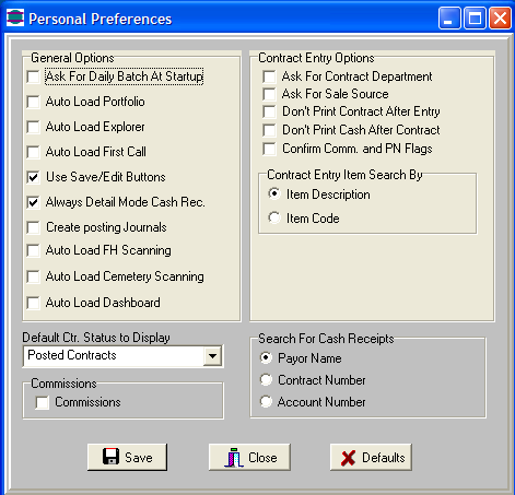 Personal Preferences are setup per