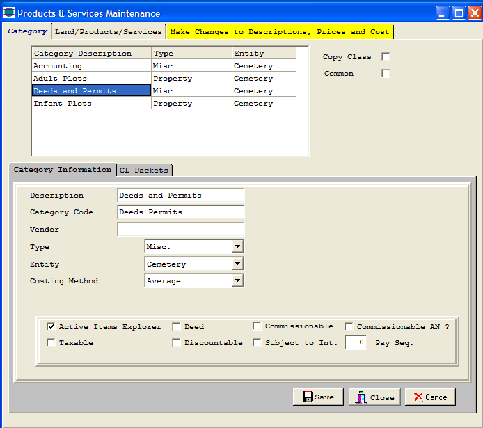 Categories of Products and Services are setup