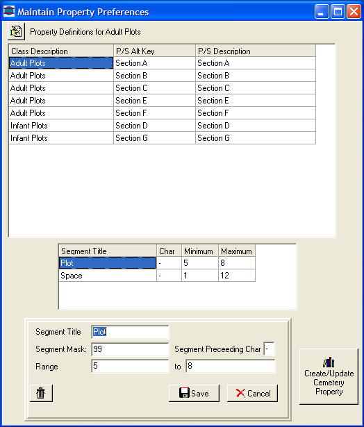 or Section-Block-Row-Grave. Specify whether the segment