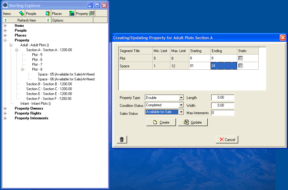 Create your Cemetery Sections in Maintain